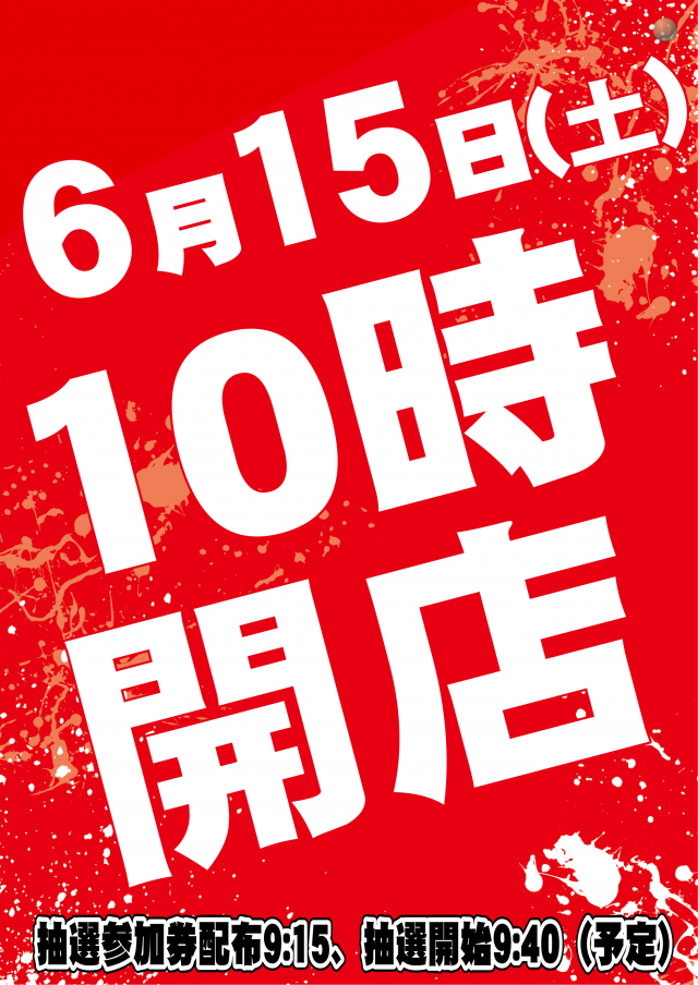 明日6月15日(土) 10時開店(予定)