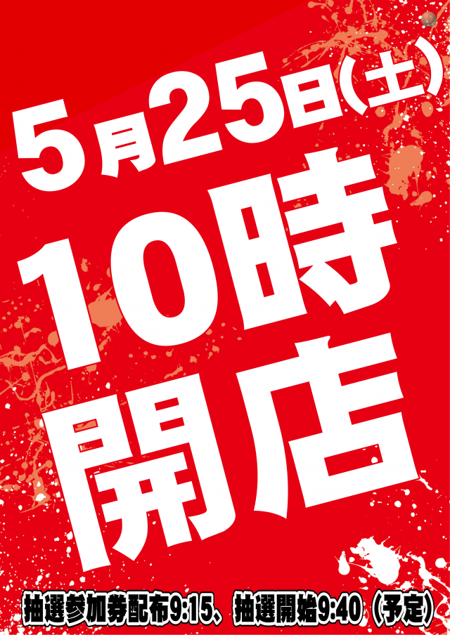 明日5月25日(土) 抽選参加券9:15配布(予定)