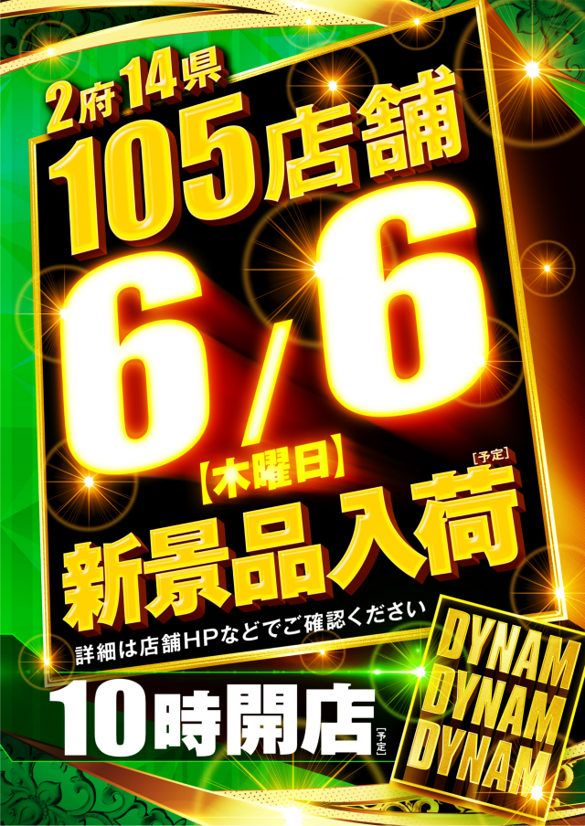 6月6日2府14県ダイナム105店舗 全店10時開店!