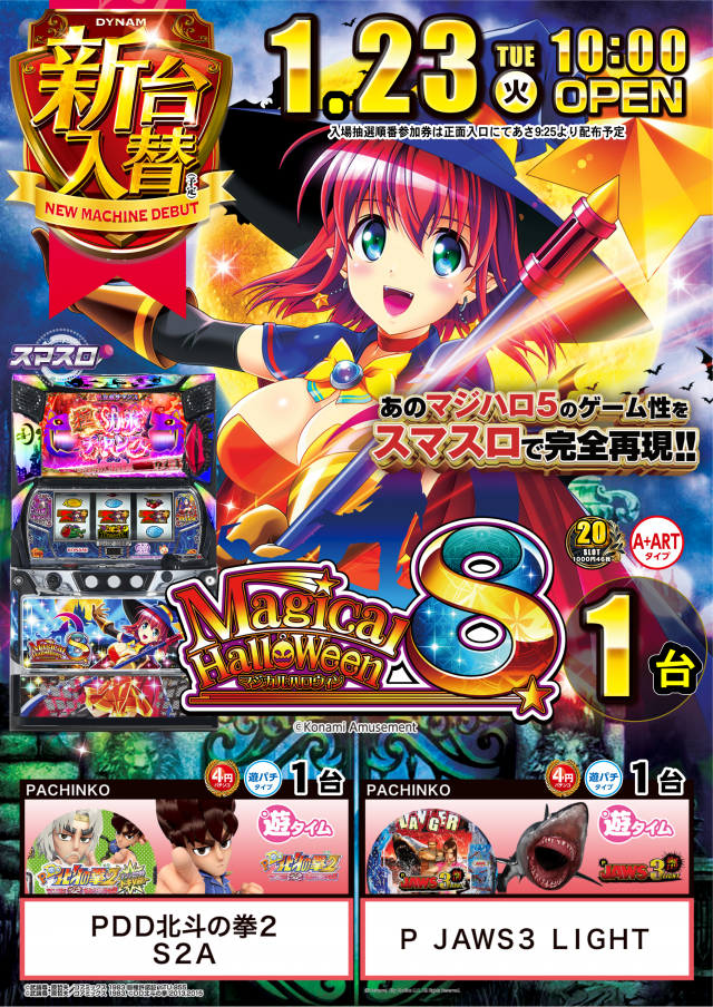 明日1/23(火)「マジカルハロウィン8」他、全3機種導入