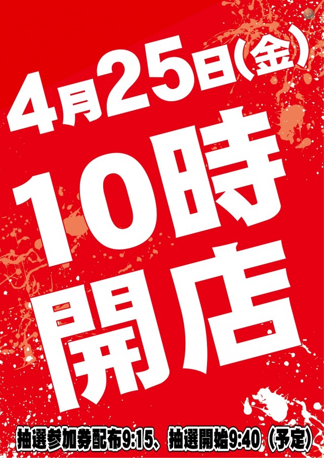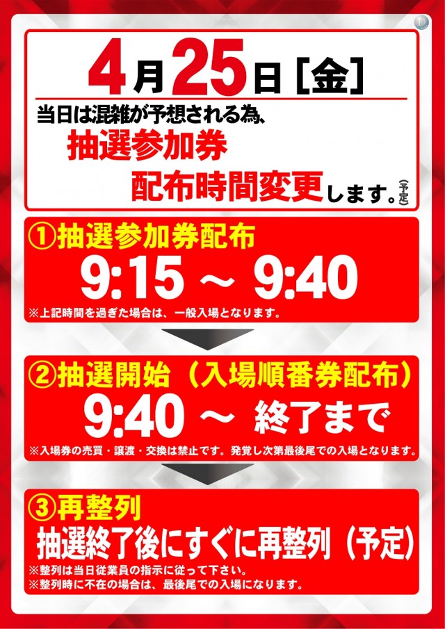 本日4月25日(金) 抽選参加券9:15配布(予定)