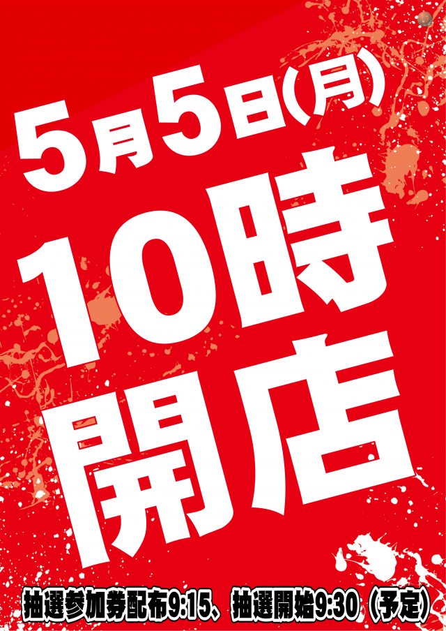 5月5日(月) 10時開店(予定)