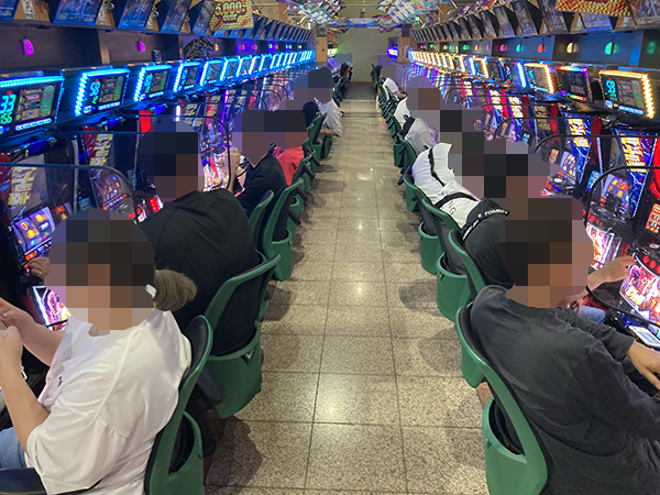 取材時は既に多くのプレイヤーであふれており、パチンコ・パチスロを問わず楽しげな表情でいっぱいだった。