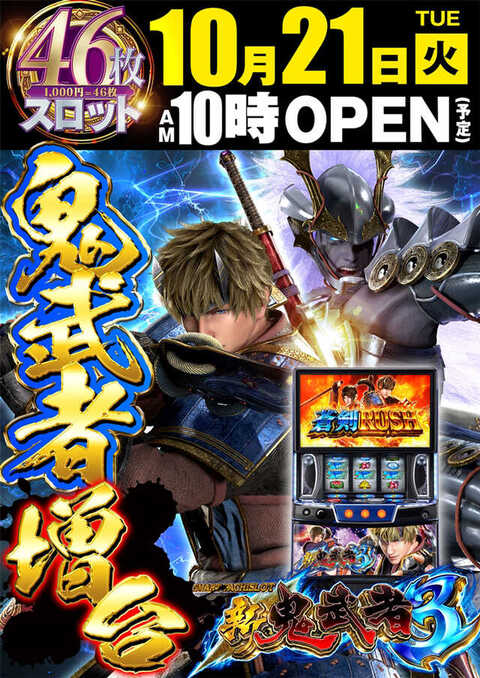 本日人気鬼武者増台‼、朝10時オープン予定