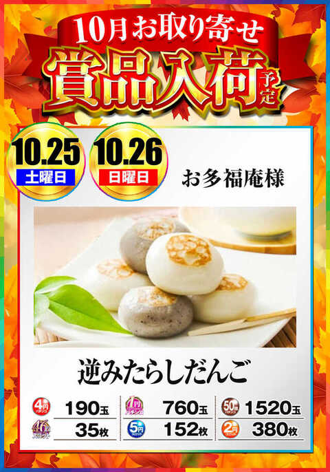 お取り寄せ賞品入荷