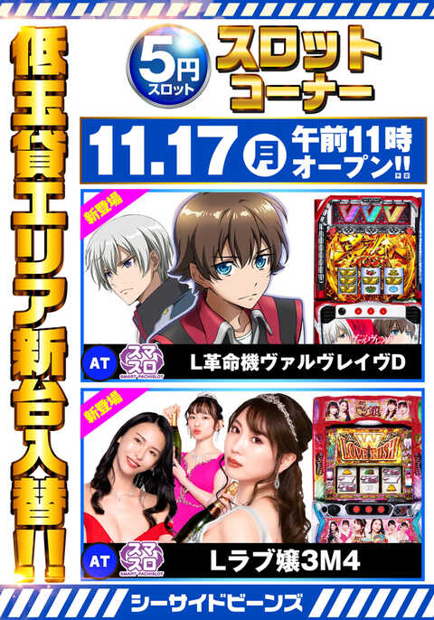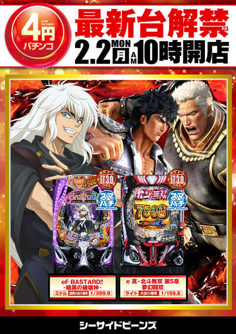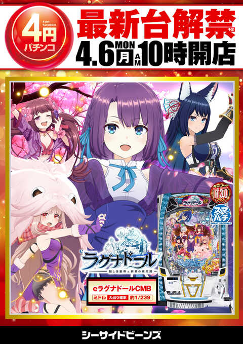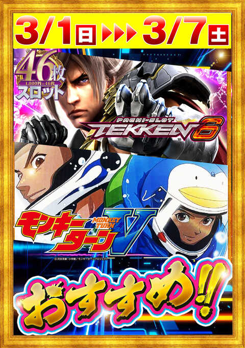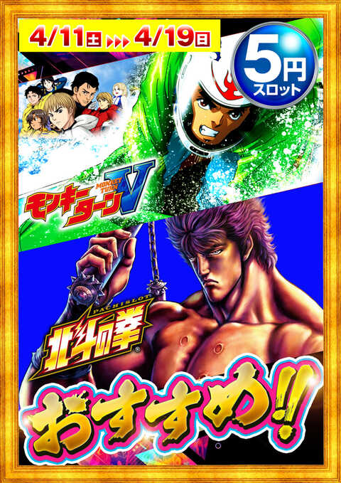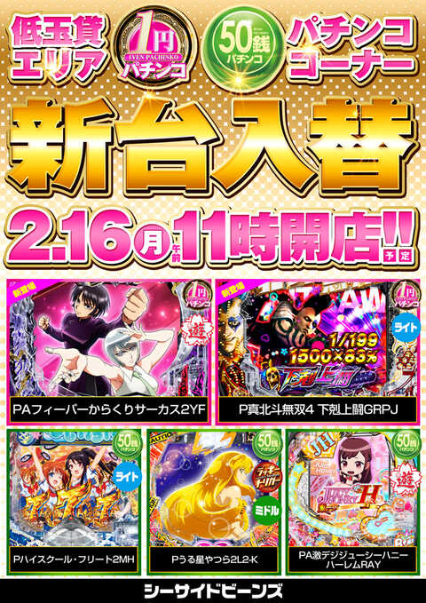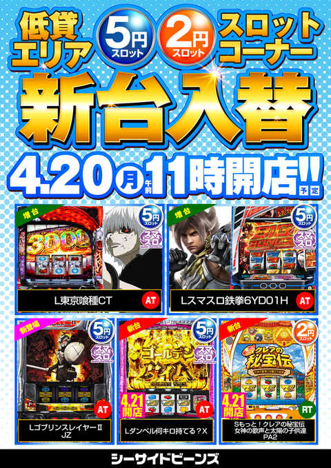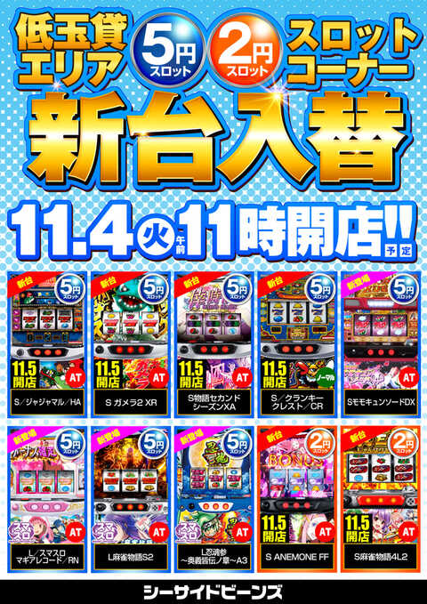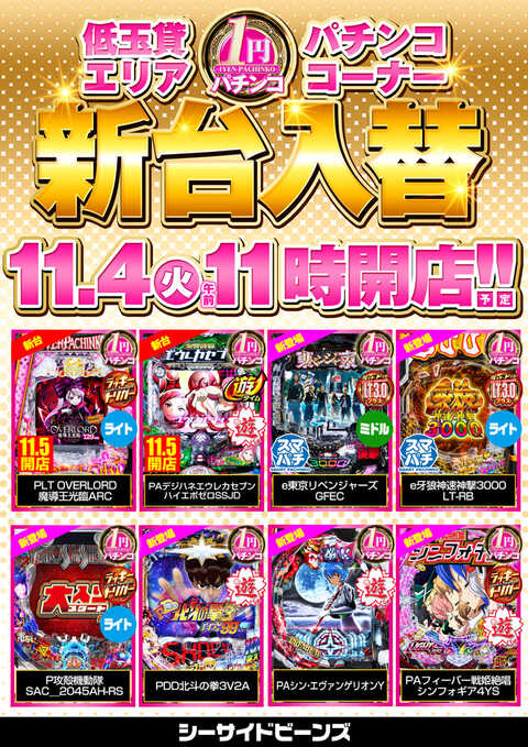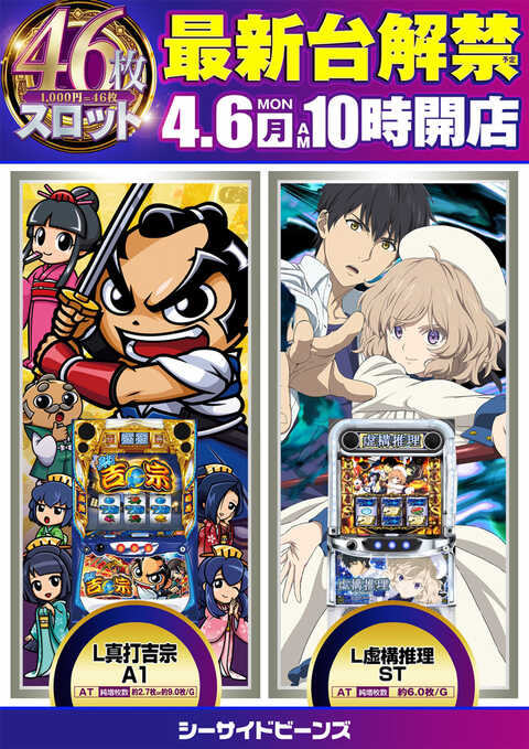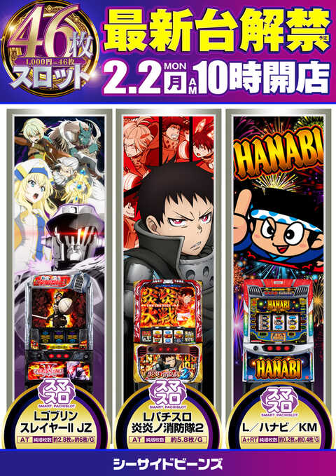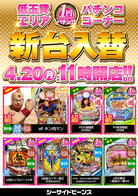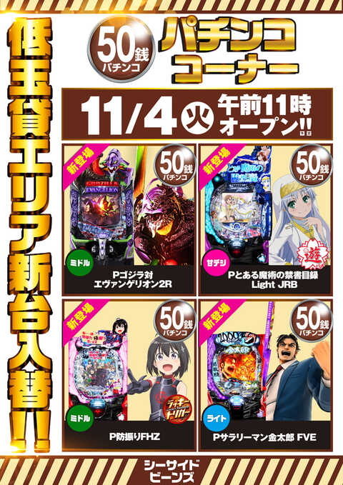パチンコ:【4円】【1円】【50銭】 スロット:【46枚貸】【5円】【2円】 |