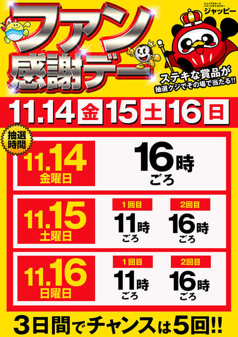 1位 11月16日(日) 2位 11月17日(月) 3位 11月1日(土)