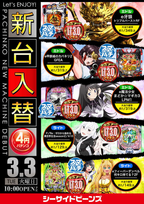 新台入替初日朝10時オープン!!!