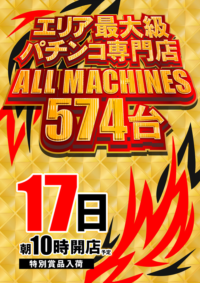 17日◆ALL MACHINES 574台◆10時OPEN◆