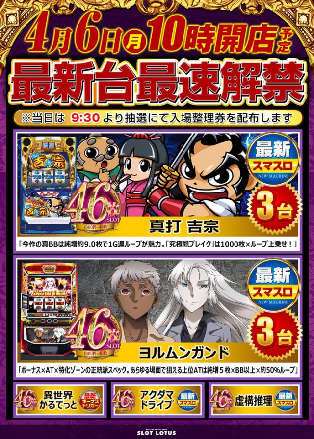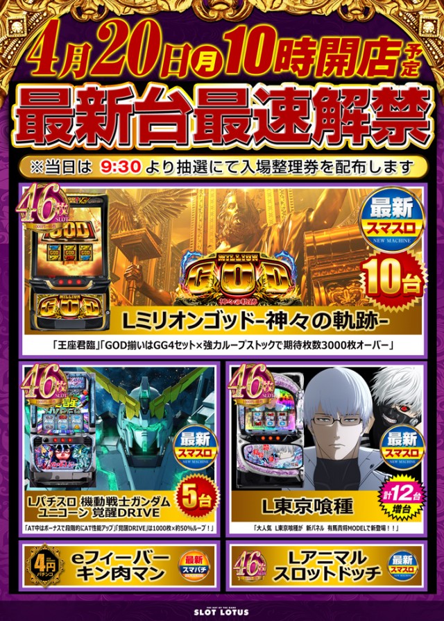 本日は9:30☆抽選入場☆になりますので、是非ご来店下さい