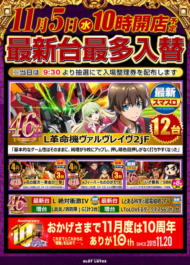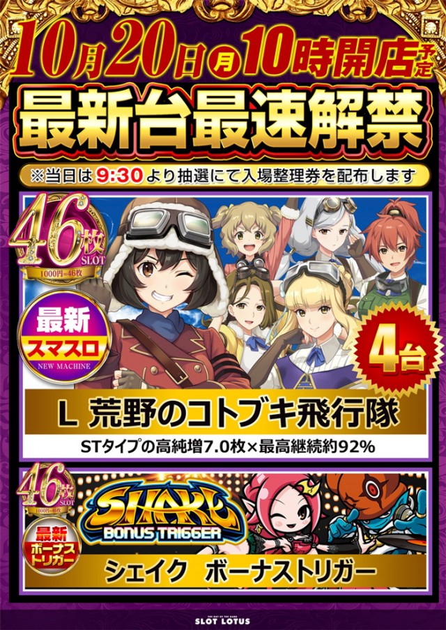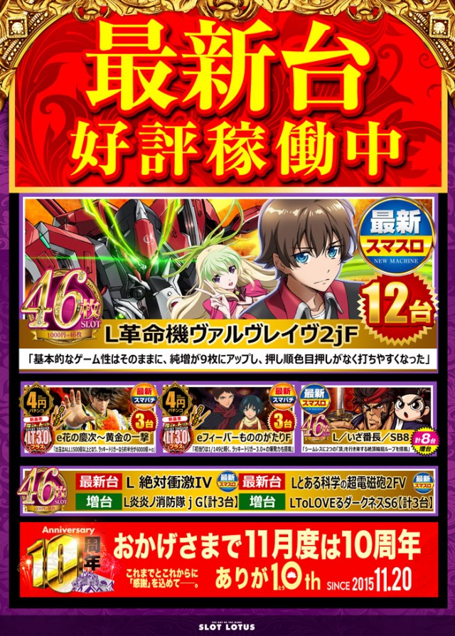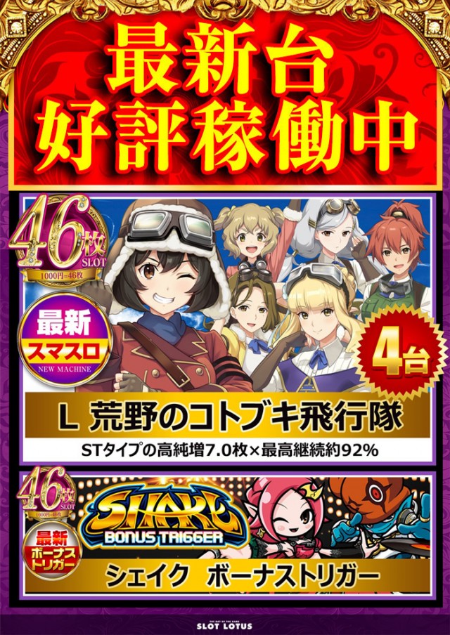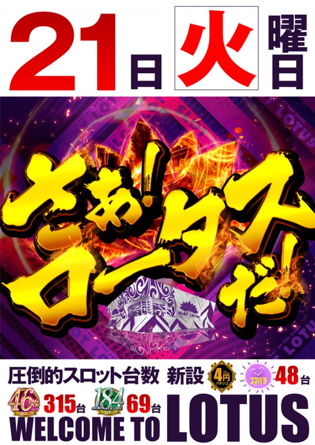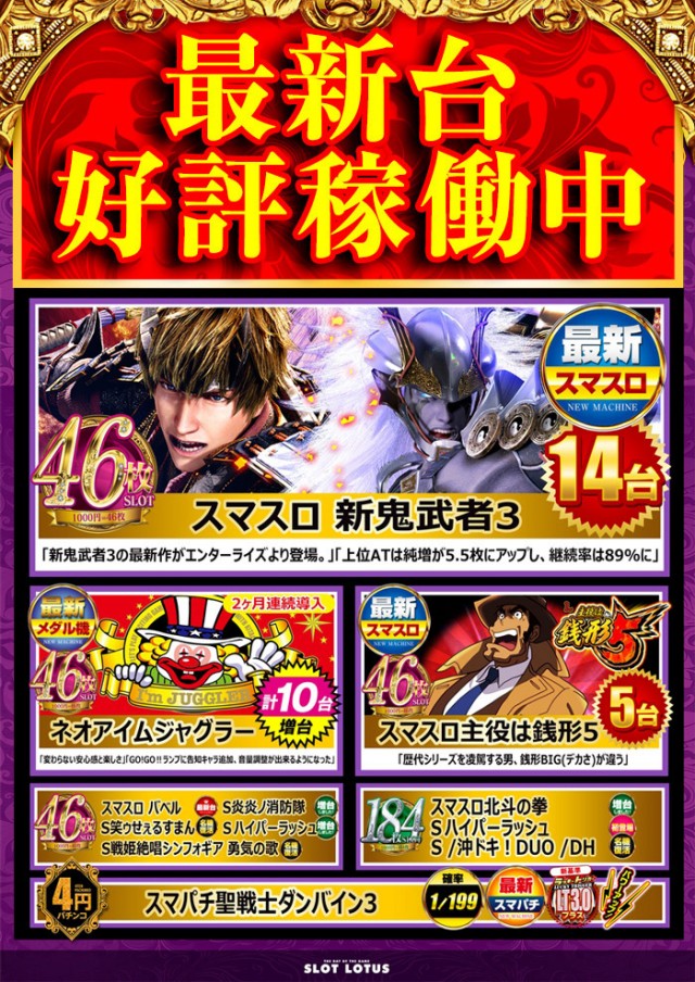 新装週末は最新台最多導入のLOTUSへ