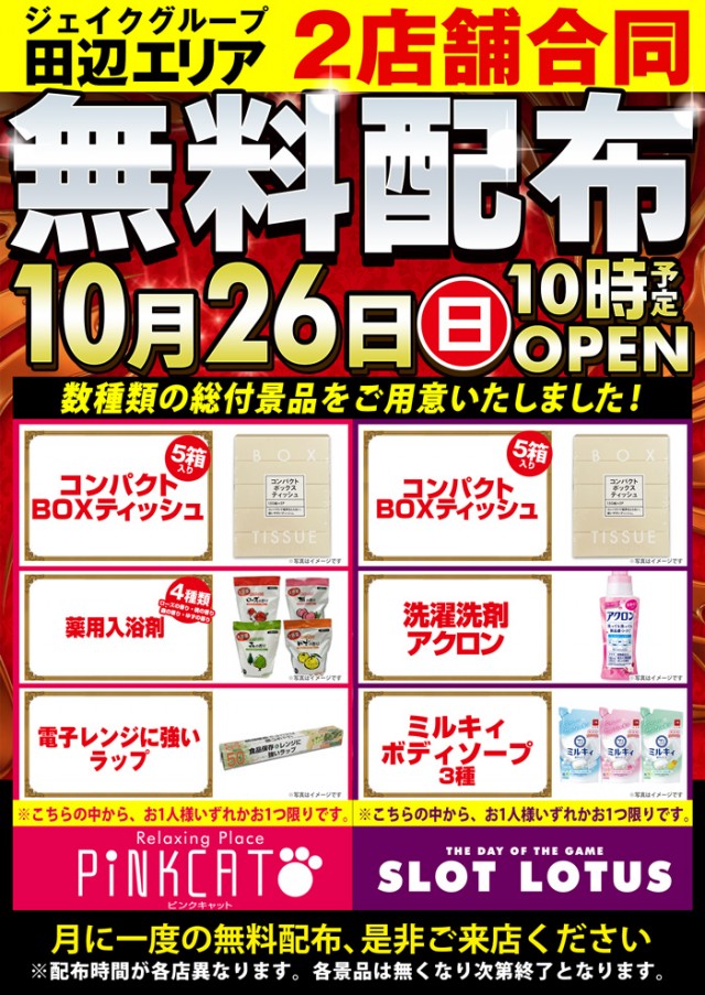田辺市本日10月26日(日曜日)は恒例の2店舗合同無料配布
