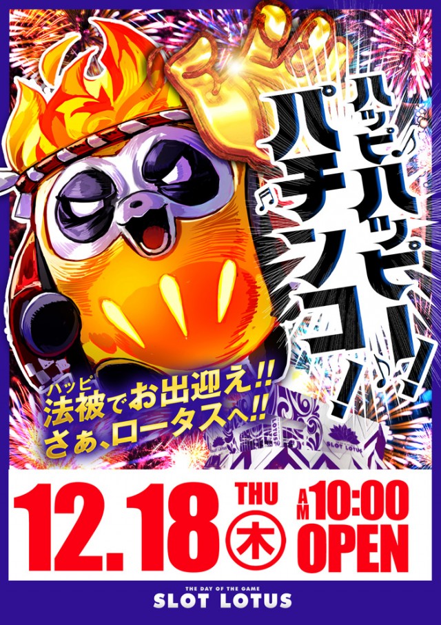 ハッピ、ハッピースロット!青法被でお出迎え さぁ、ロータスへ最新台導入完了☆好評稼働中☆