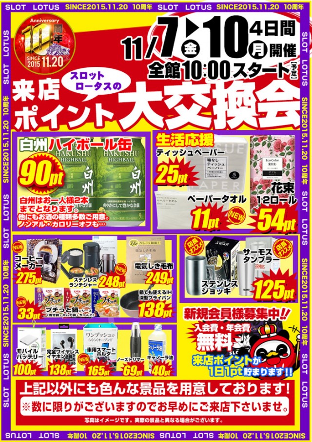 新装週末は最新台最多導入のLOTUSへポイント交換会開催中🌈