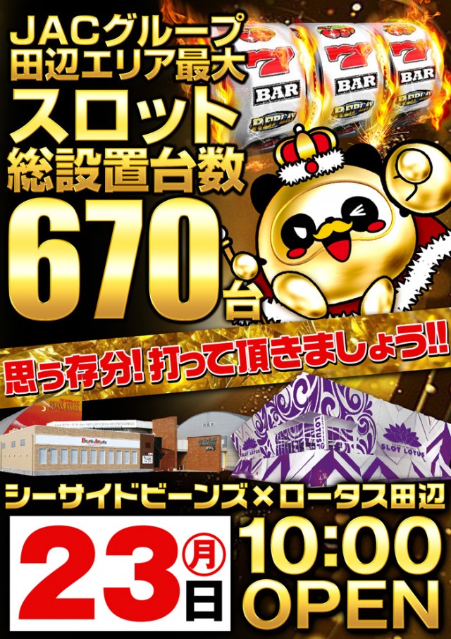 ロータス×シーサイドビーンズ SLOT総台数670台 全台10時開店