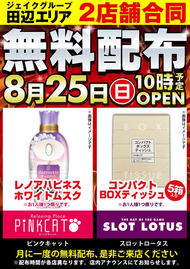 田辺市本日8月25日(日曜日)は恒例の2店舗合同無料配布