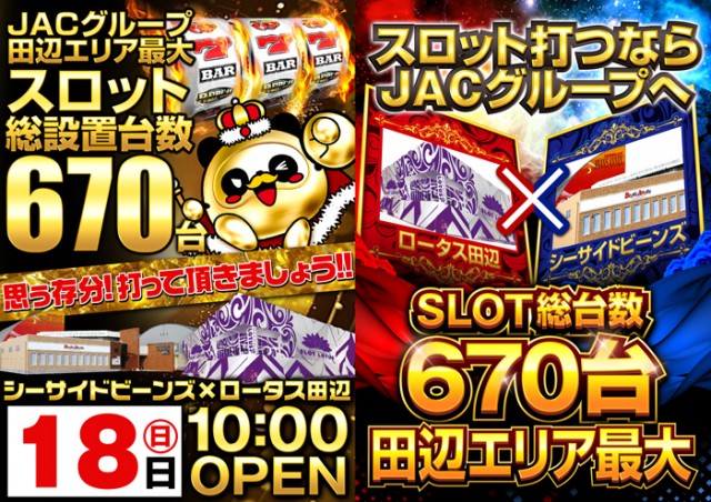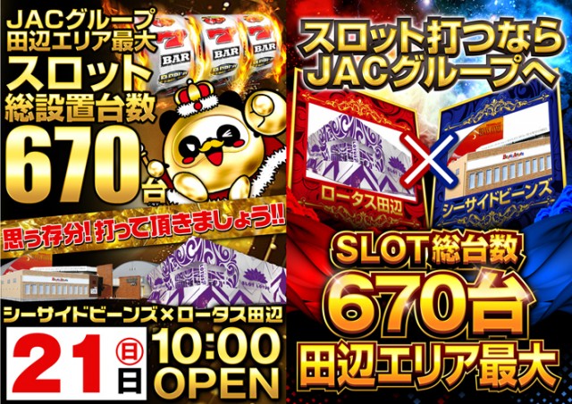 ロータス×シーサイドビーンズ SLOT総台数670台 全台10時開店