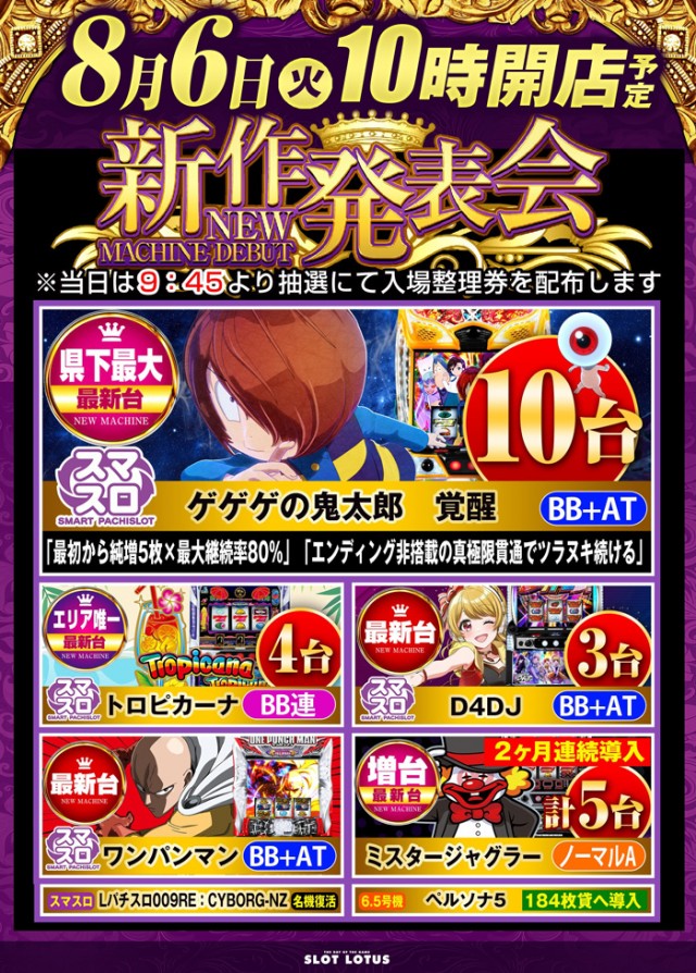 県下最大SLOT専門店LOTUS 全館10時開店