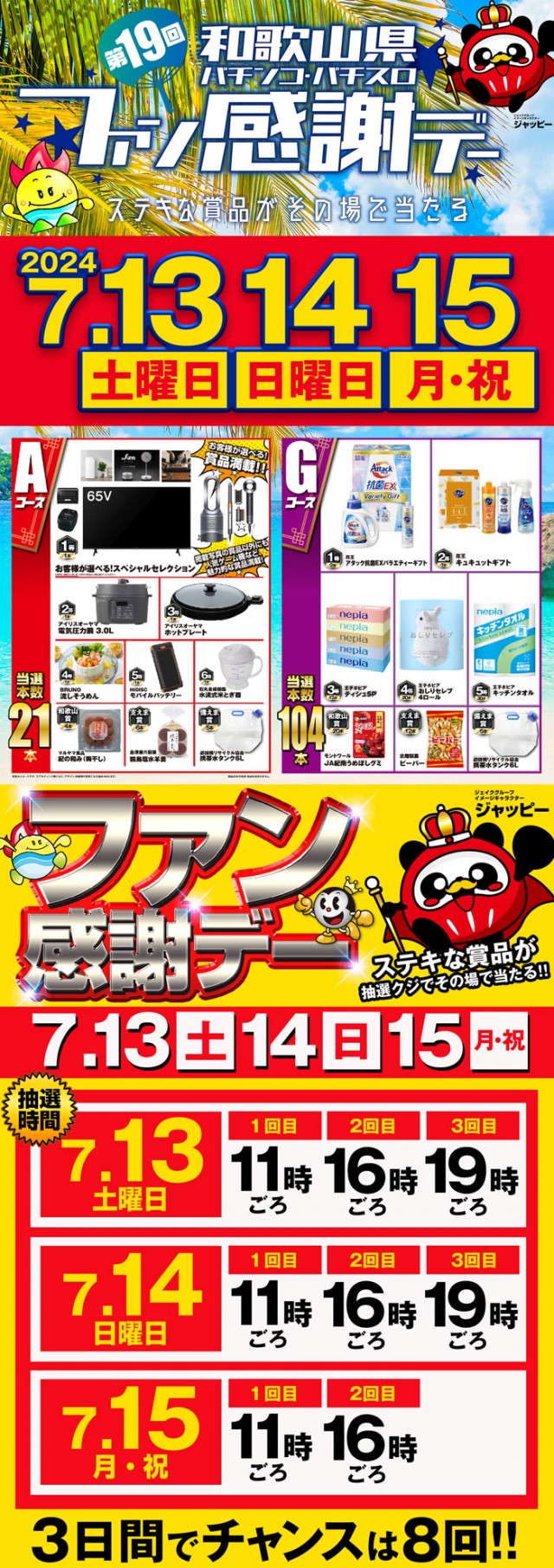 明日7月21日(日)はJACグループ田辺エリアSLOT最大