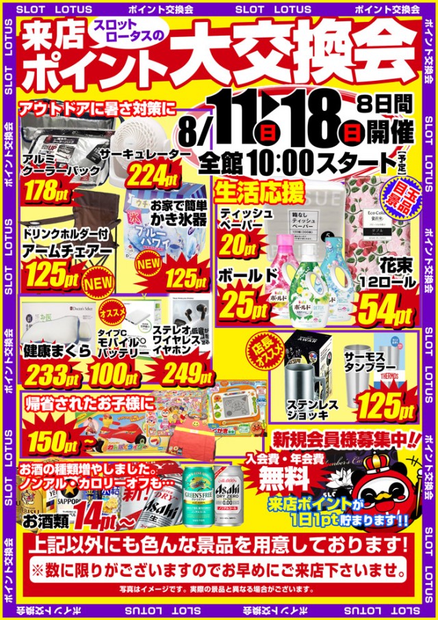 本日も来店ポイント大交換会開催中 ~お盆期間毎日~