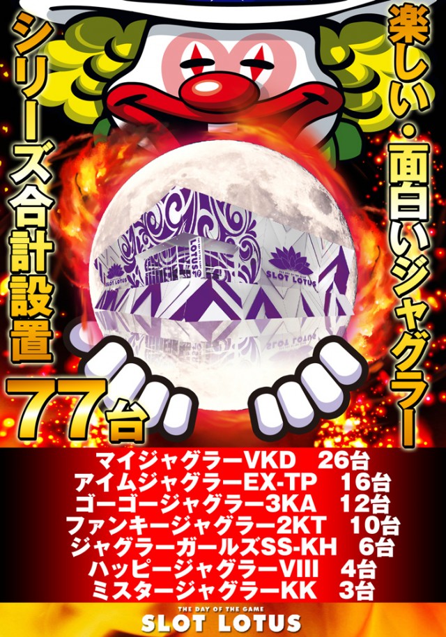 楽しい、面白いジャグラーシリーズ合計77台設置店