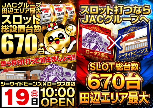 ロータス×シーサイドビーンズ SLOT総台数670台 全台10時開店