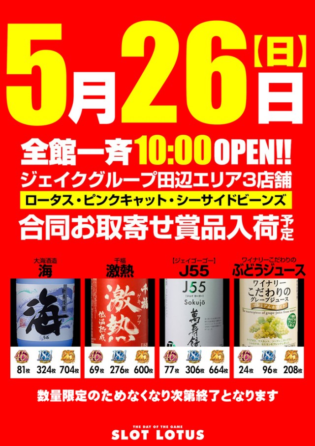 明日5月19日(日)はJACグループ田辺エリアSLOT最大