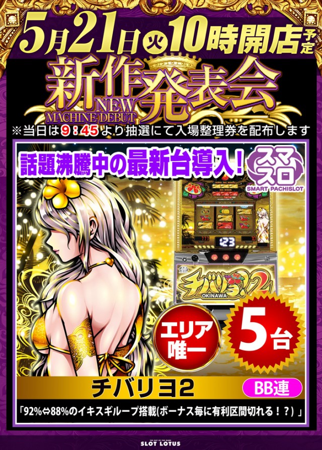 話題沸騰中の最新台チバリヨ2 エリア唯一5台導入10時開店