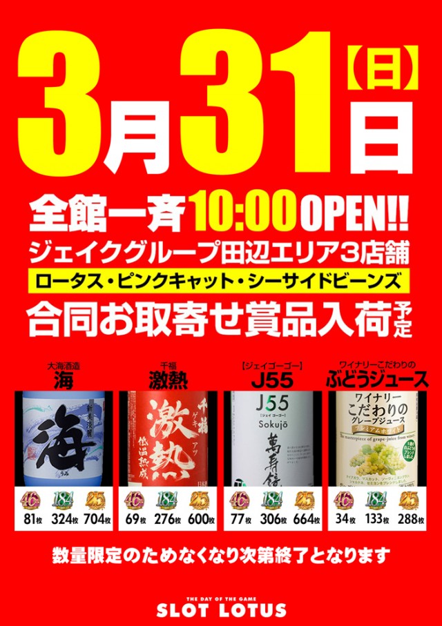 田辺市本日3月24日(日)はJACグループ田辺エリアSLOT最大