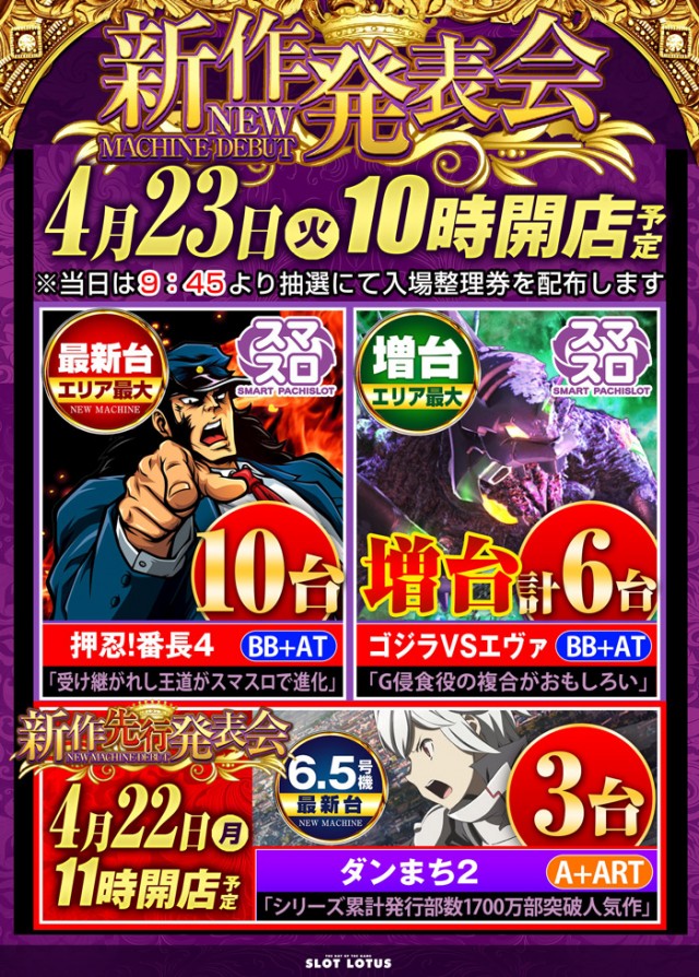 本日23日(火)最新台最多開店 9:45入場抽選🌈
