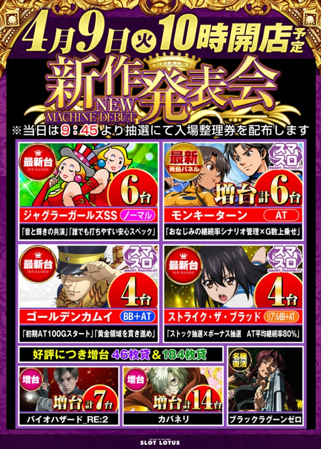 ※本日は9:45抽選入場となりますので、是非ご来店下さい。