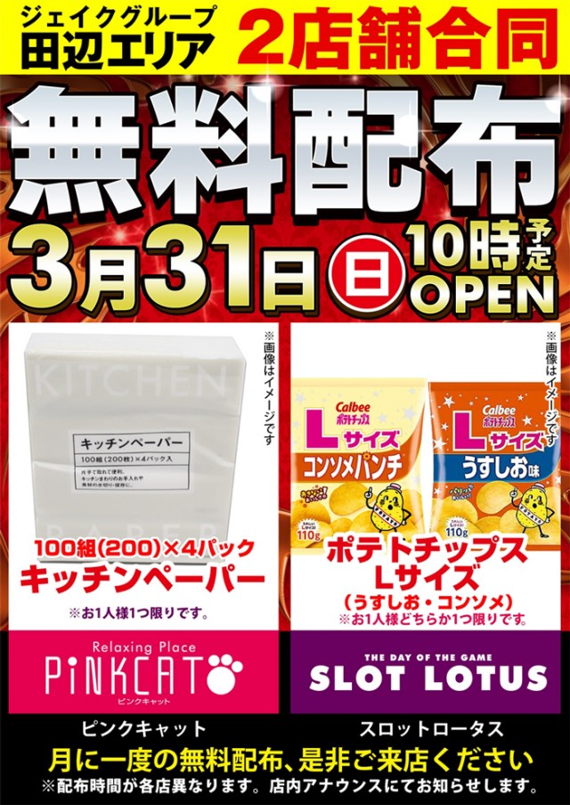 田辺市本日3月31日(日曜日)は恒例の2店舗合同無料配布