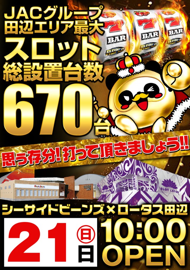 ロータス×シーサイドビーンズ SLOT総台数670台 全台10時開店