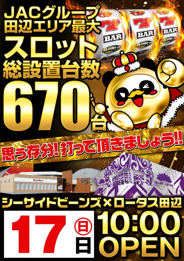 シーサイドビーンズ×ロータス SLOT総台数670台 全台10時開店