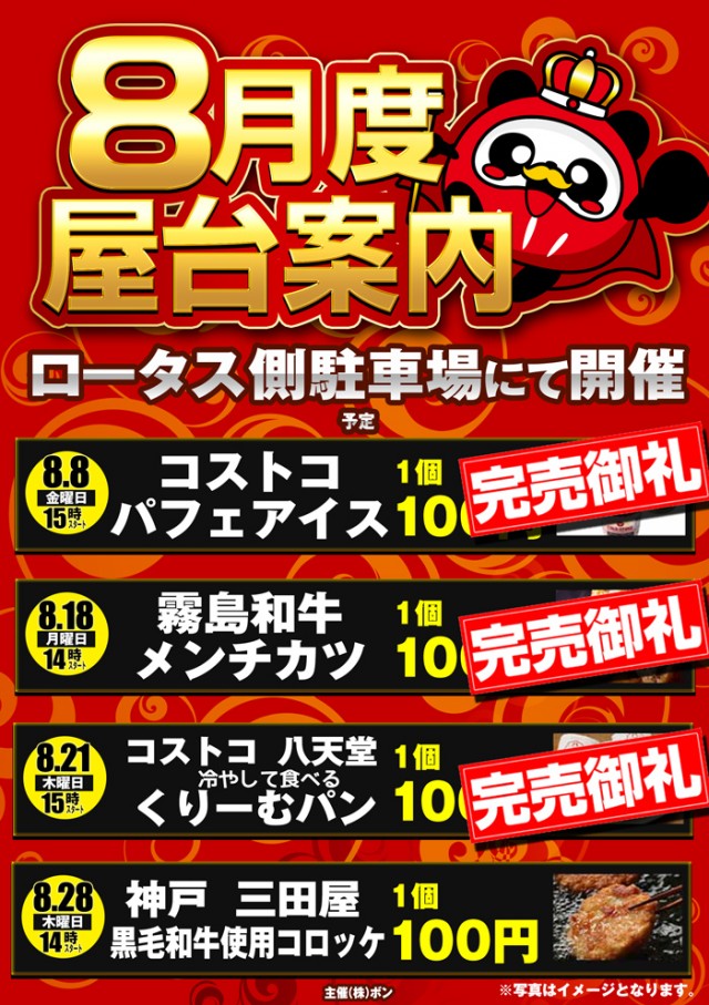 本日8/28(木)は全館10時開店 本日屋台も来店🌈
