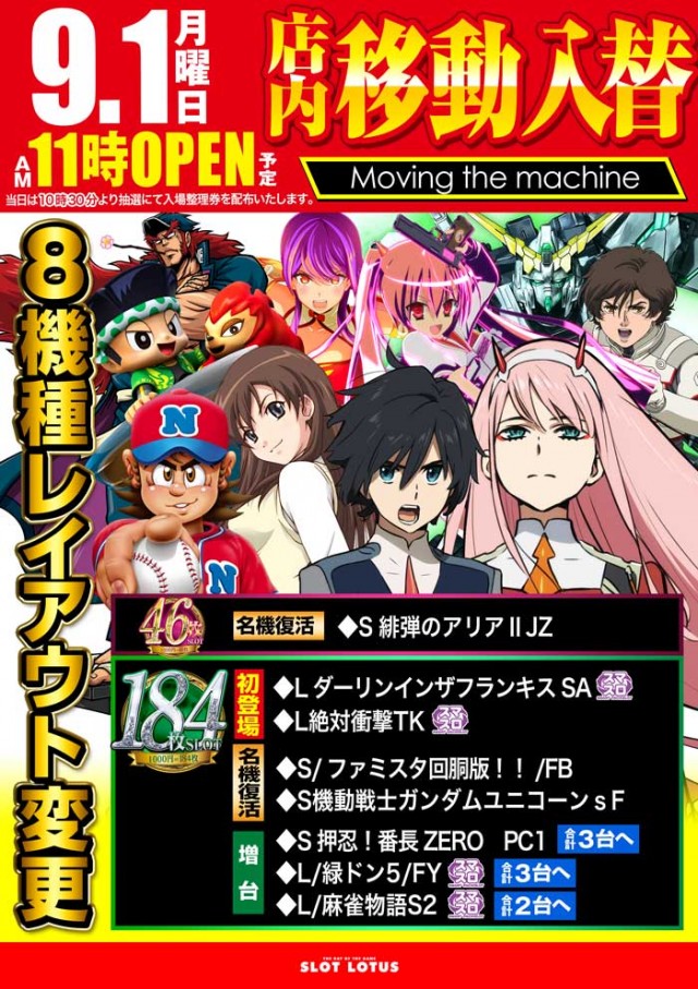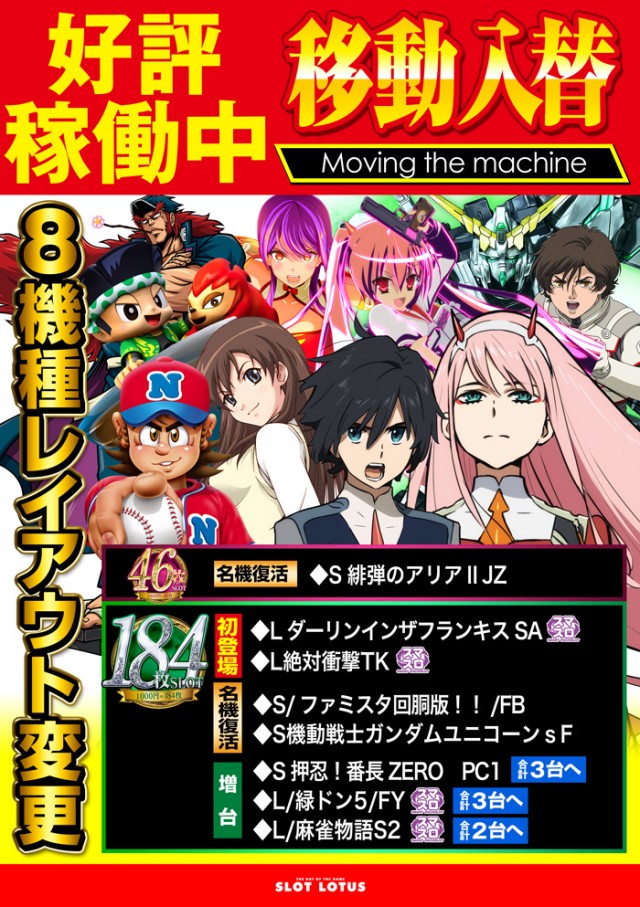 店内移動入替 レイアウト変更 184枚貸に人気機種続々登場