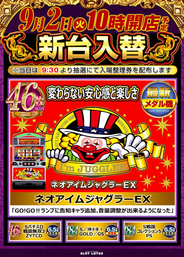 新装週末は最新ネオアイムジャグラー導入のLOTUSへ🌈