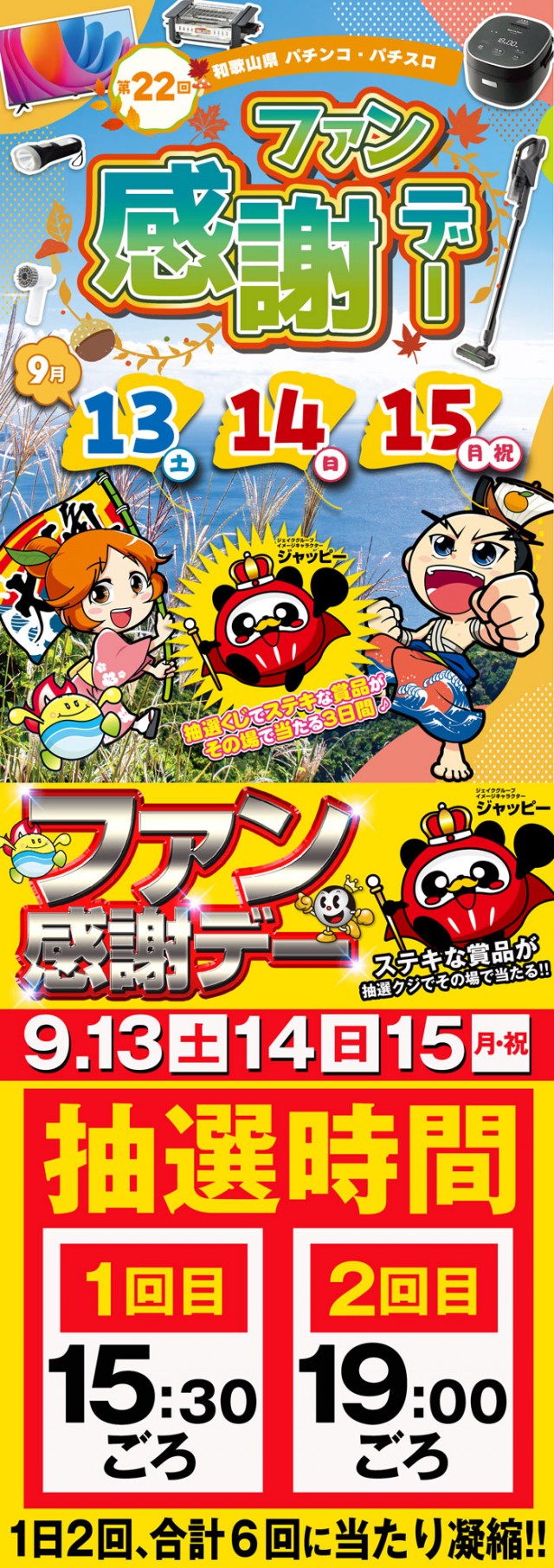 9月18日(木)ハッピ、ハッピ― 本日9:30抽選入場🌈