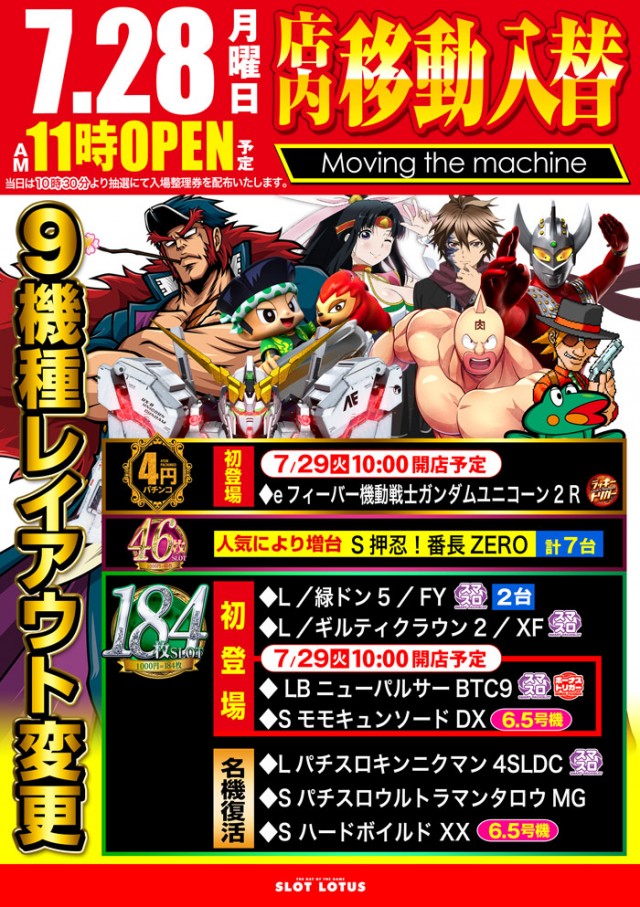パチンコ誕生Since4.8体感セヨ7/28(月)11時開店