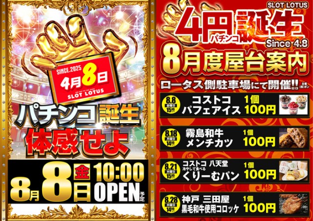 ⑧の付く日恒例 4円パチンコ誕生屋台開催