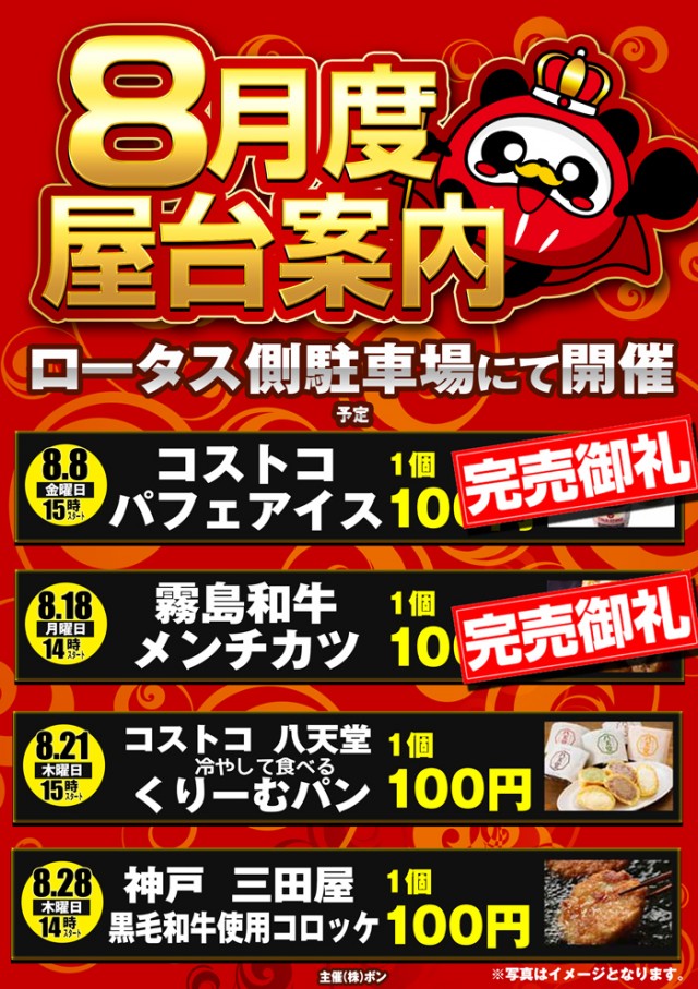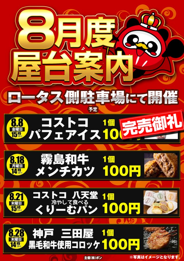 明日8/18(月)は新台検査の為全館11時開店 屋台も来店🌈