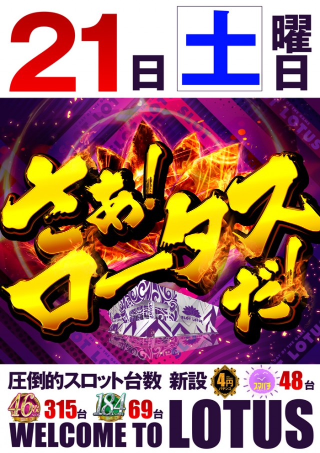 本日SLOTLOTUSは9:30☆抽選入場☆になりますので、是非ご来店下さい