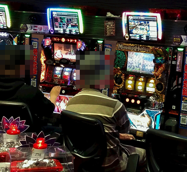 20円パチスロでは、「バジリスク~甲賀忍法帖~絆」と「ミリオンゴッド-神々の凱旋-」の盛り上がりが目立っていた。各シマには機種の魅力を引き出しているプレイヤーが多く、満足度の高さが伝わってくるようであった。
