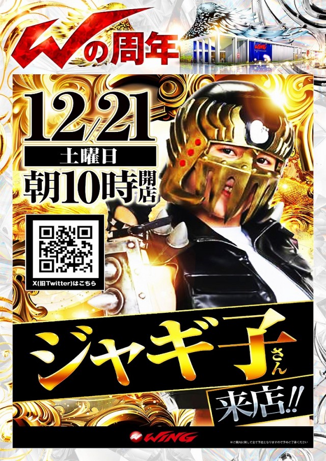 12月21日【ウインググループ創業日・ジャギ子さん来店予定】