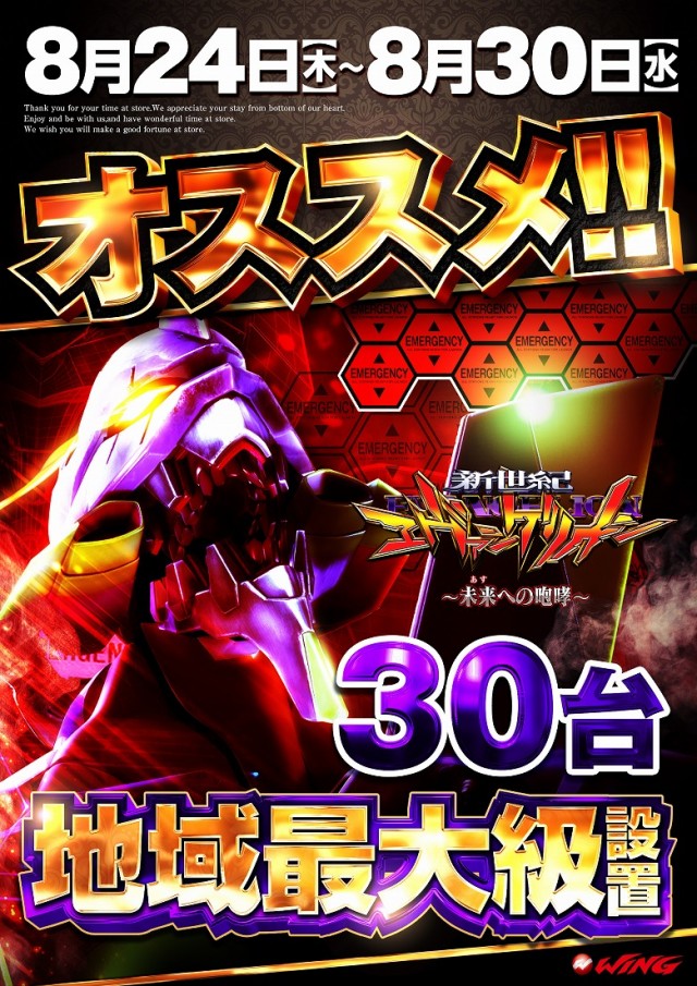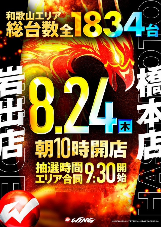 さぁ😡8月24日(木)😡朝10時開店😡ウイングで楽しもう