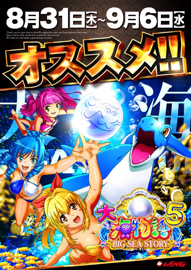 9月もWING岩出店へ!!行こか!!大海5オススメ!!