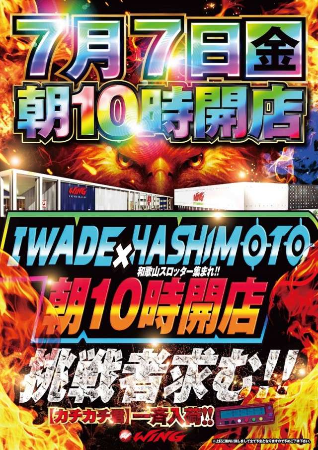 7月7日【金】IWADE×HASHIMOTO朝10時開店!!
