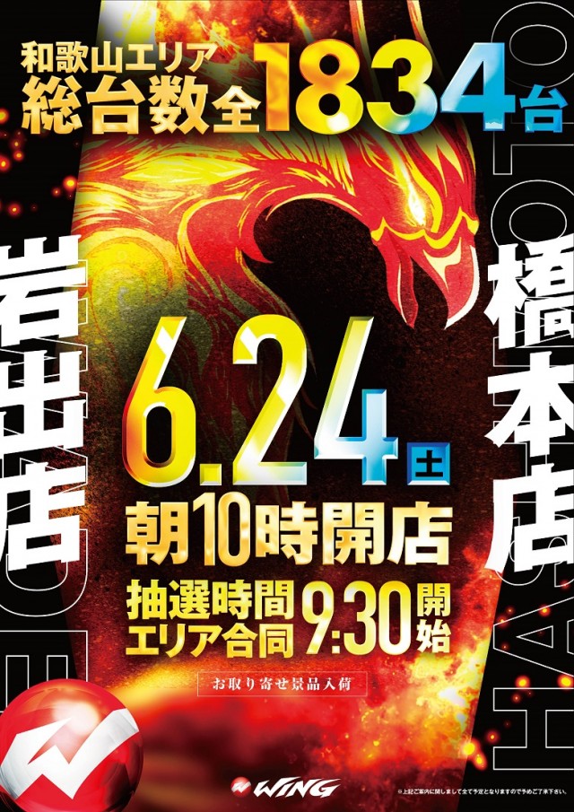 【ウイング岩出店】22日(木)朝10時開店 新台開放ずみ!!