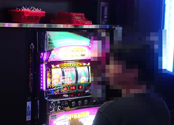 4台が設置されており、確認時に稼働していたのは1台。活躍をするプレイヤーによって、稼働率の高さ以上の活気に包まれていた。存在感は、周囲に置かれているほかの8機種のジャグラーシリーズよりも、ひときわ大きい。