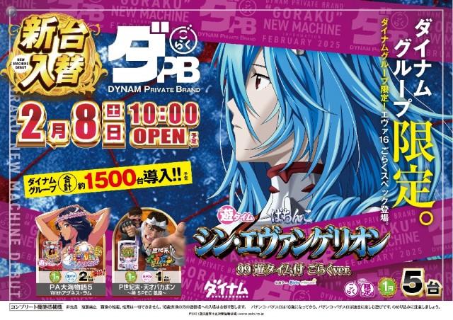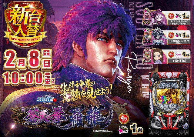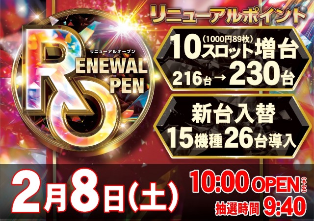 明日2月8日(土)リニューアルオープン新台入替10時開店予定